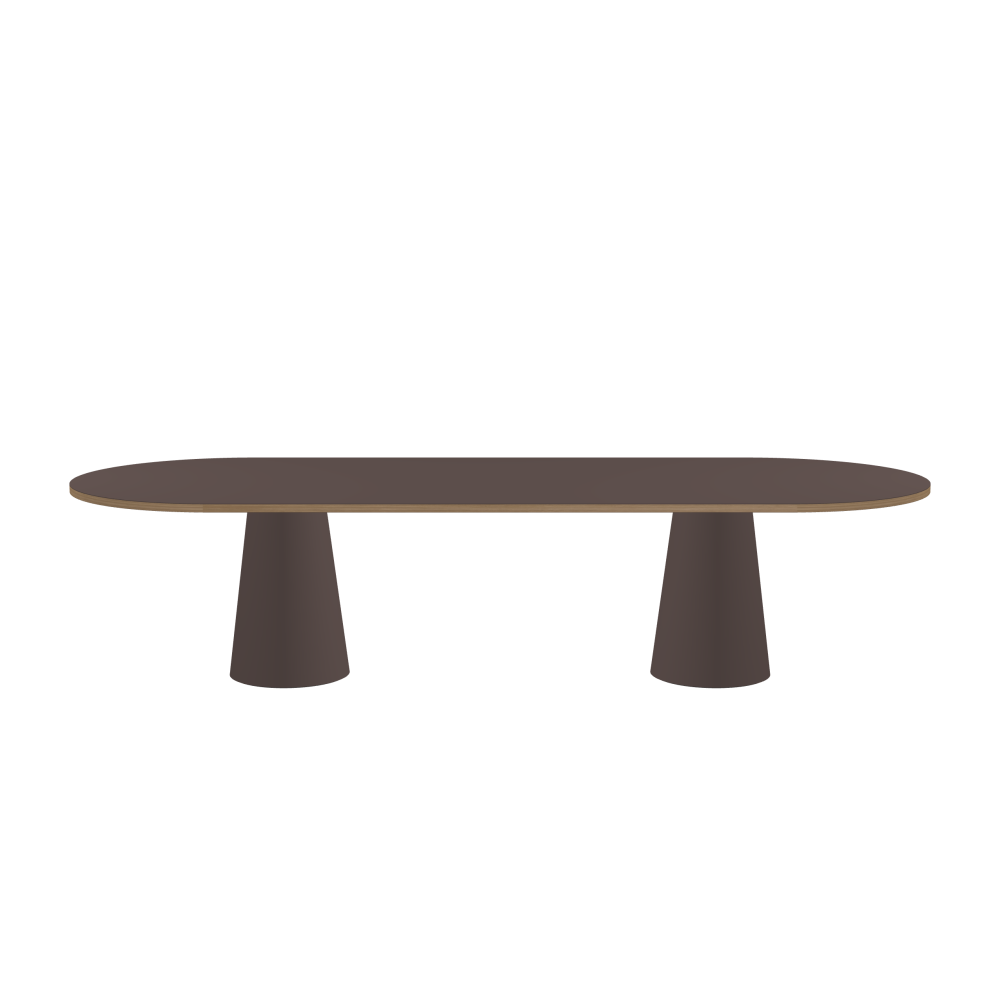ALT Tisch - Form Eckig - Länge 320,00 cm - Tiefe 120,00 cm - Radius 60,00 cm - Stärke 3 cm - Freiformfläche 1.00000000 - Oberseite Linoleum, 4172 Mauve - Kern Stäbchenplatte - Kante Holz, Eiche - Kantenschräge 90° / ALT Tischsäule - Oberseite Linoleum, 4172 Mauve - Größe L: Ø 42 × H 72 cm