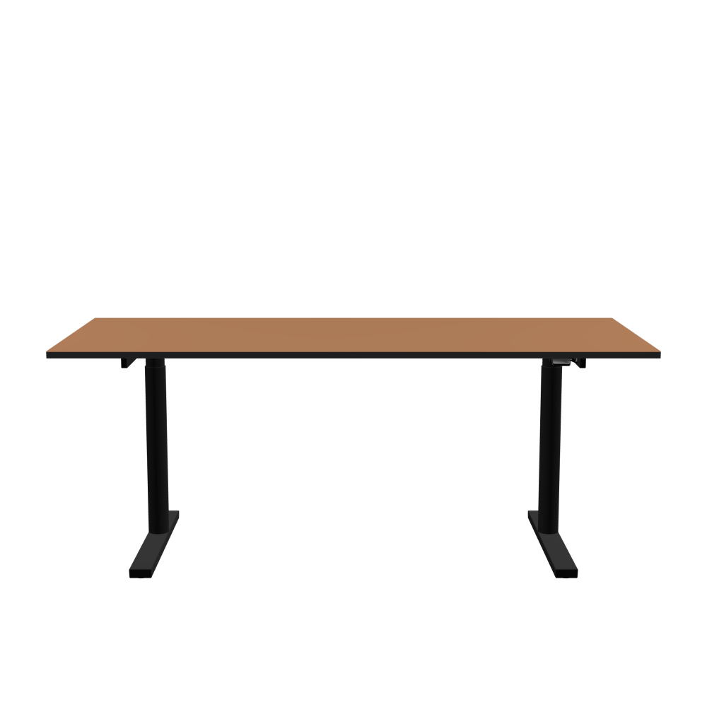ATS Schreibtisch - Form Eckig - Länge 188,00 cm - Tiefe 80,00 cm - Radius 0,30 cm - Stärke 2,1 cm - Oberseite Linoleum, 4003 Walnut - Kern MDF - Kante MDF, Schwarz - Kantenschräge 90° / ATS Schreibtischgestell - Materialien und Farben Pulverbeschichtet, Tiefschwarz (RAL 9005) - Größe L 146 x B 71 cm - Motorsäule Rund - Bedienelement Standard