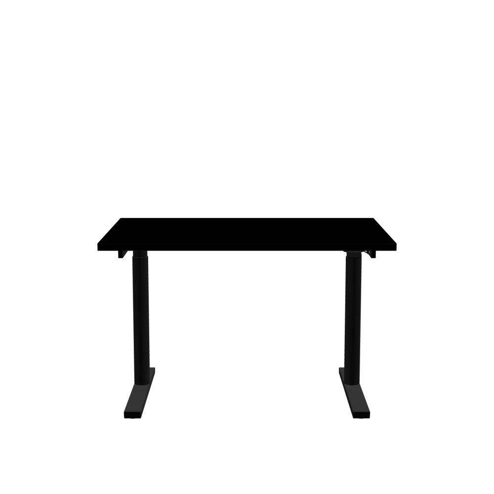 ATS Schreibtisch - Form Eckig - Länge 120,00 cm - Tiefe 80,00 cm - Radius 0,30 cm - Stärke 3 cm - Oberseite Linoleum, 4023 Nero - Kern Stäbchenplatte - Kante Linoleum, 4023 Nero - Kantenschräge 90° / ATS Schreibtischgestell - Materialien und Farben Pulverbeschichtet, Tiefschwarz (RAL 9005) - Größe L 106 x B 71 cm - Motorsäule Rund - Bedienelement Standard