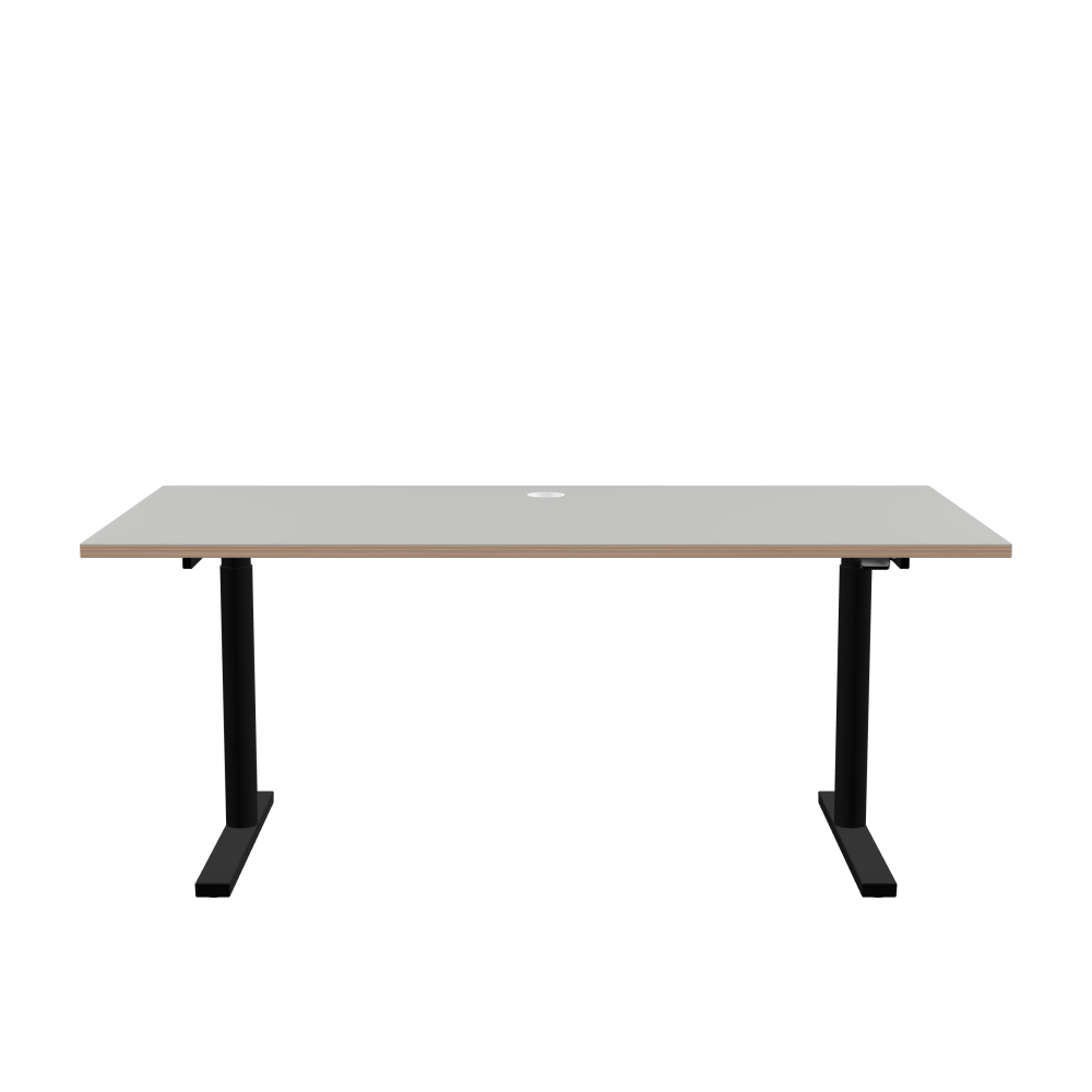 ATS Schreibtisch - Form Eckig - Länge 180,00 cm - Tiefe 90,00 cm - Radius 0,30 cm - Stärke 2,6 cm - Oberseite Linoleum, 4175 Pebble - Kern Multiplex Birke - Kantenschräge 90° / ATS Schreibtischgestell - Materialien und Farben Pulverbeschichtet, Tiefschwarz (RAL 9005) - Größe L 146 x B 71 cm - Motorsäule Rund - Bedienelement Standard